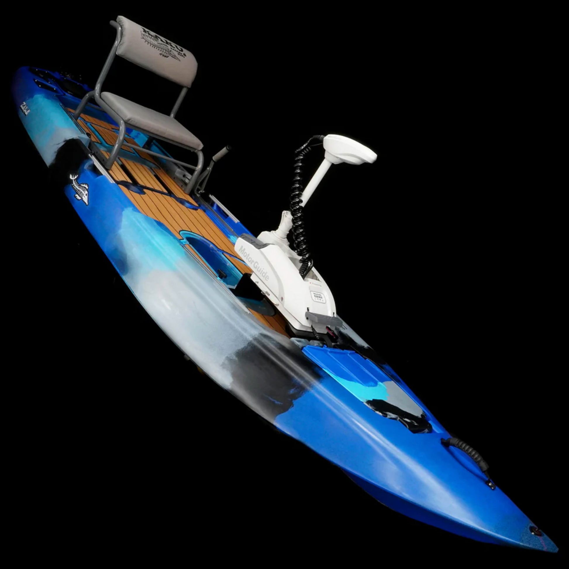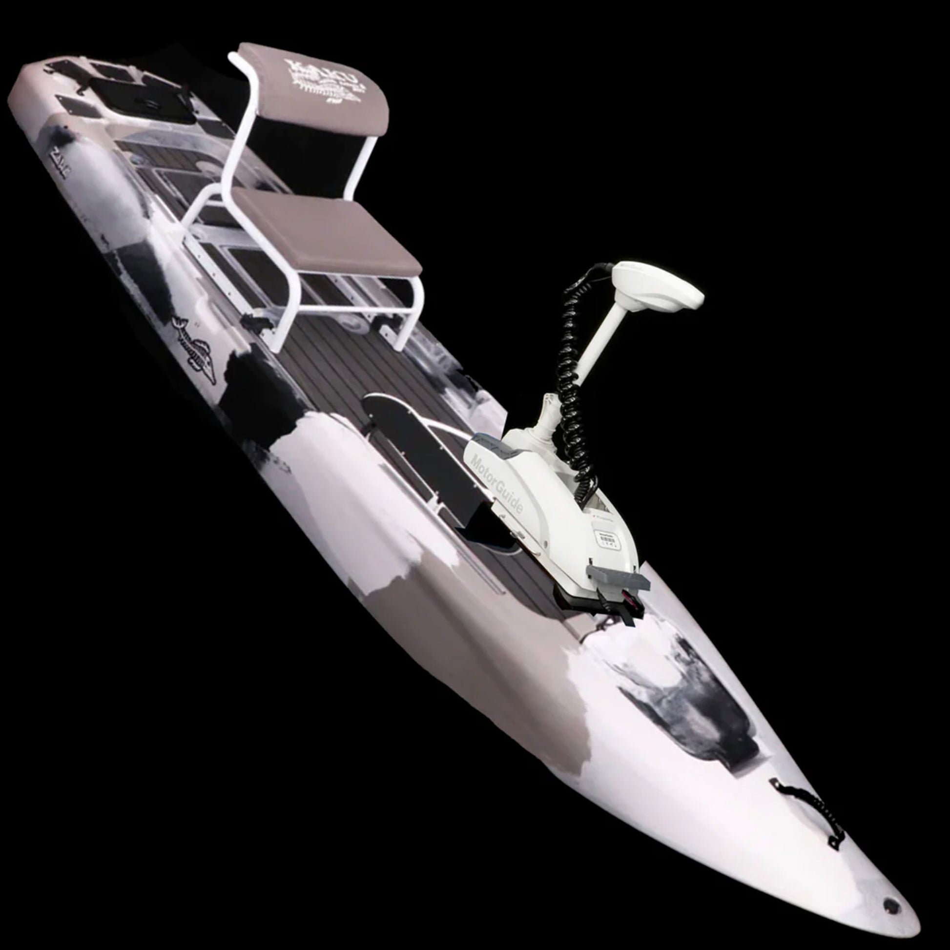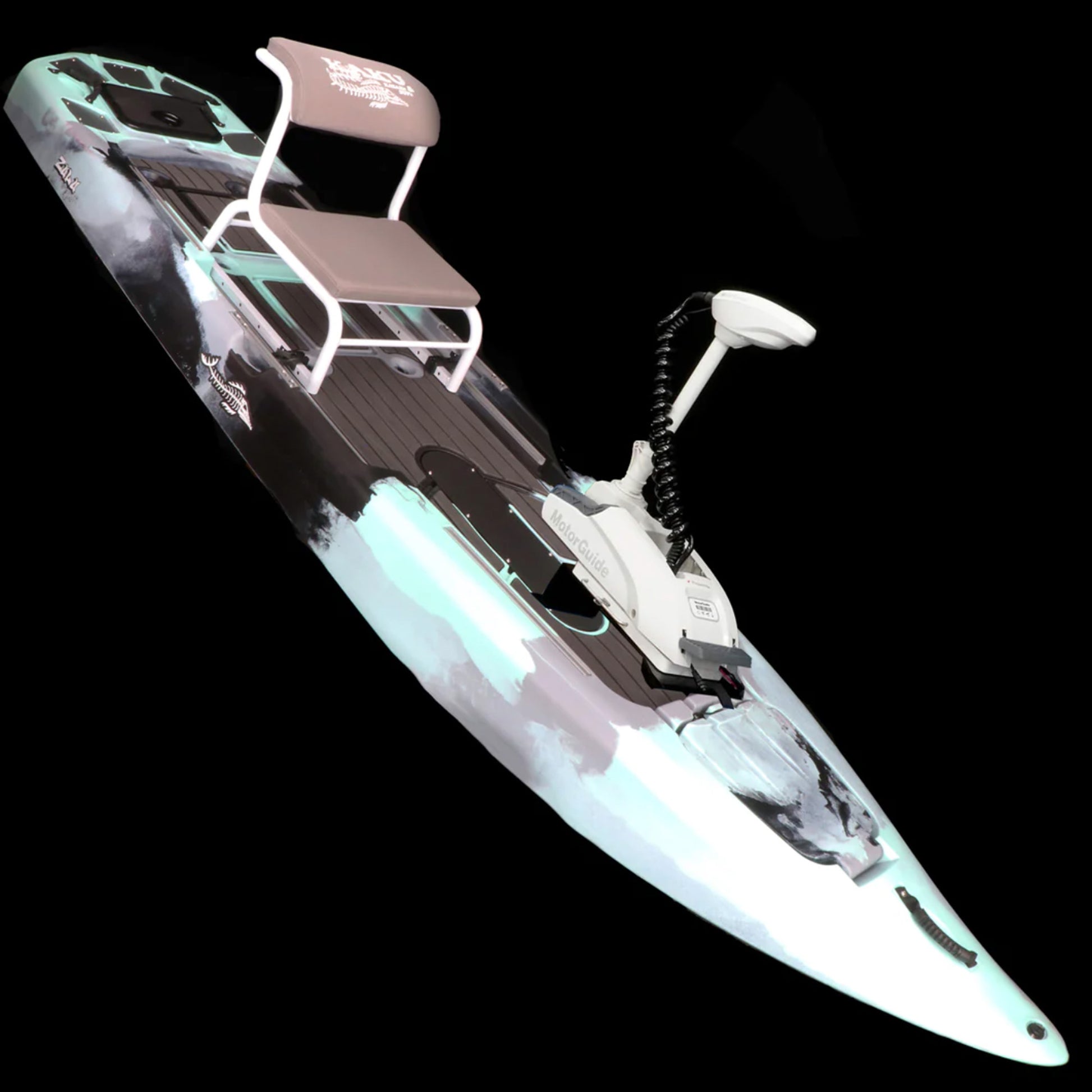 The Zulu IGuide is a GPS remote-controlled powered Zulu. Fully outfitted with a quick release Motor Guide Xi3 55lb thrust Trolling motor with the upgraded Katana Prop, Motor Guide’s best performing weedless prop. This versatile setup gives you plenty of power, spot lock, and tracking without giving up much deck space. An additional option is the Tomahawk rudder system. With the rudder system you can cruise with motor locked in forward and steer with the hand lever. Does not come with a battery. We offer an Amped Outdoors 80AH lithium battery you can order with or choose whatever 12V battery you desire.