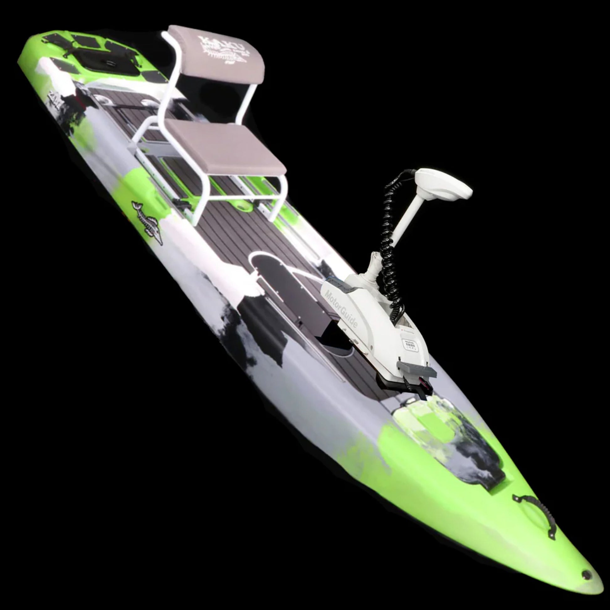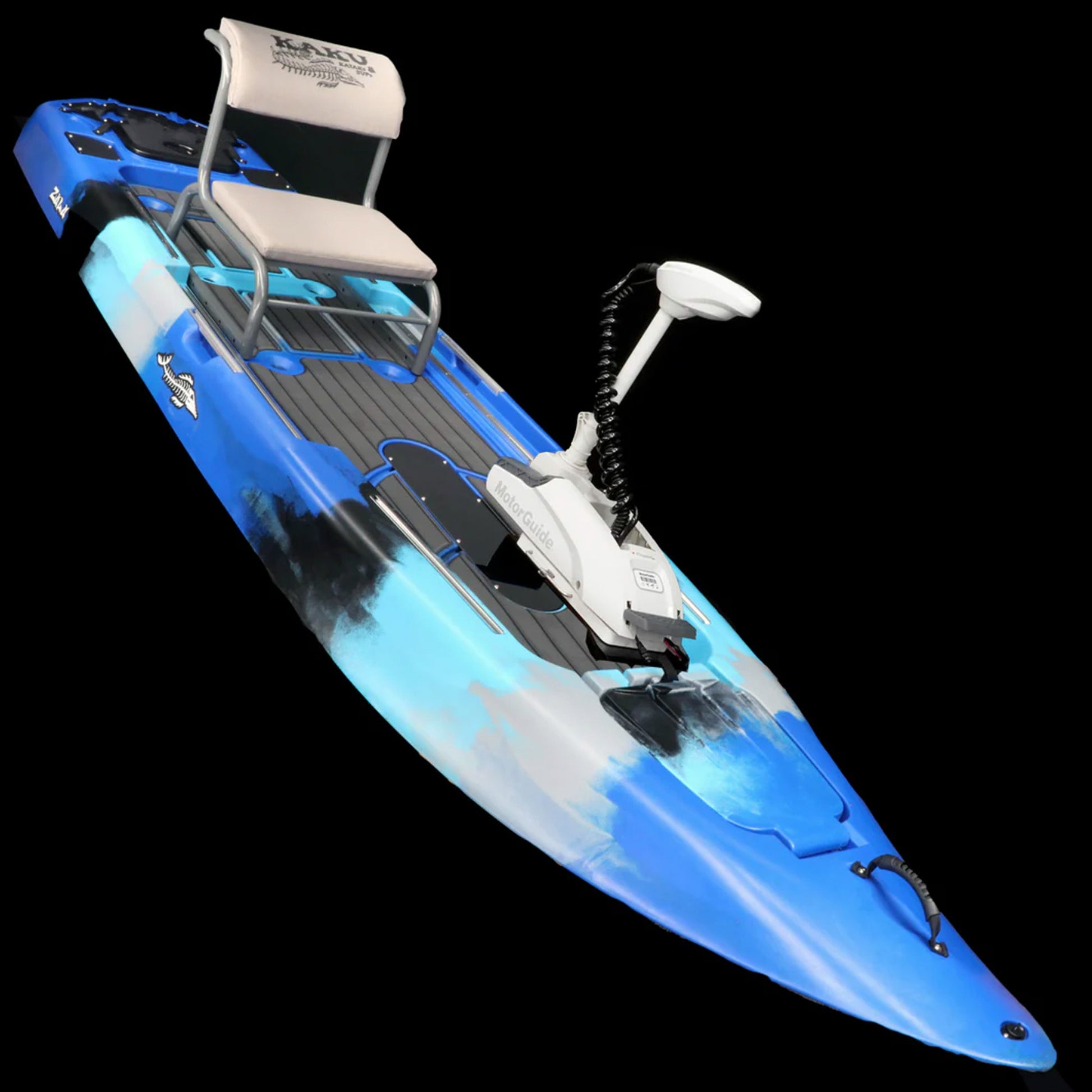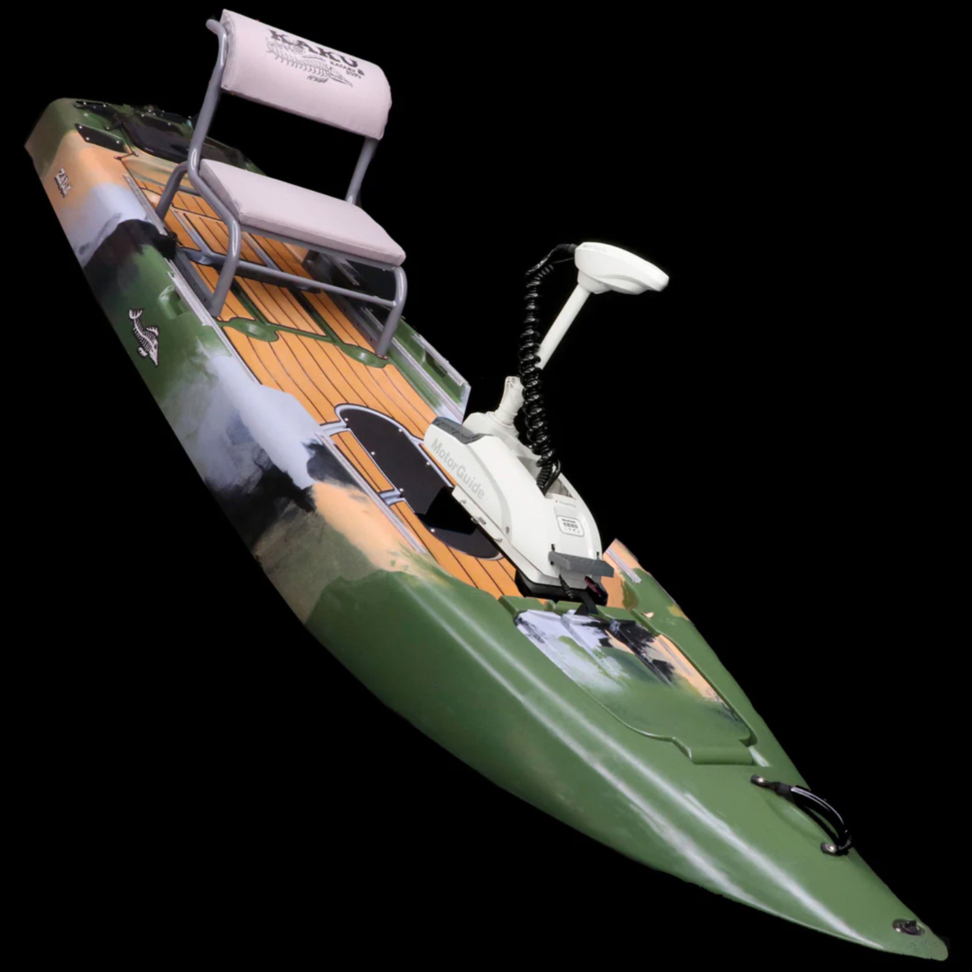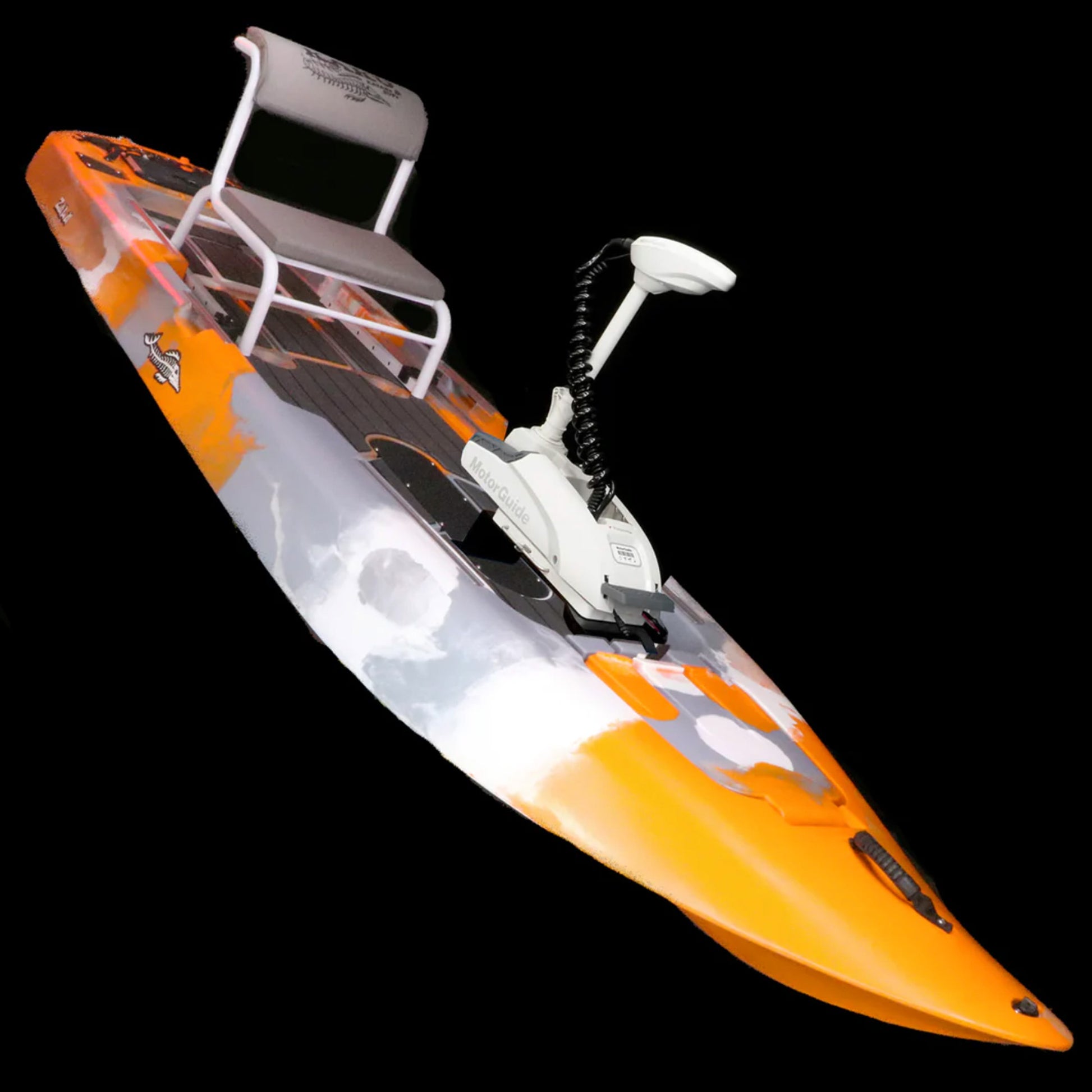 The Zulu IGuide is a GPS remote-controlled powered Zulu. Fully outfitted with a quick release Motor Guide Xi3 55lb thrust Trolling motor with the upgraded Katana Prop, Motor Guide’s best performing weedless prop. This versatile setup gives you plenty of power, spot lock, and tracking without giving up much deck space. An additional option is the Tomahawk rudder system. With the rudder system you can cruise with motor locked in forward and steer with the hand lever. Does not come with a battery. We offer an Amped Outdoors 80AH lithium battery you can order with or choose whatever 12V battery you desire.
